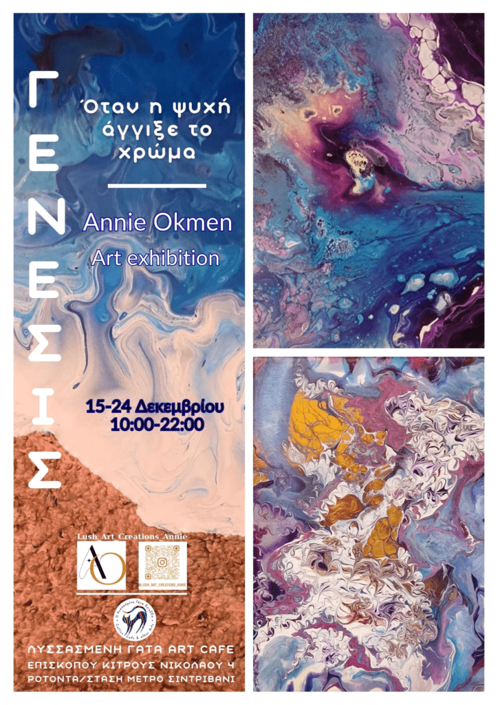 Ατομική Έκθεση Ζωγραφικής της Annie Okmen – «ΓΕΝΕΣΙΣ – όταν η ψυχή άγγιξε το χρώμα» Fluid Art – Abstract –…
