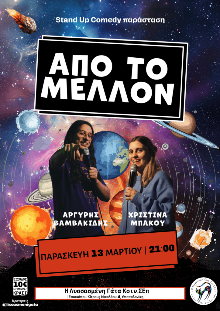 Ο Αργύρης Βαμβακίδης και η Χριστίνα Μπάκου ενώνουν τις δυνάμεις τους για να δημιουργήσουν στο παρόν μια κωμική παράσταση από το μέλλον.