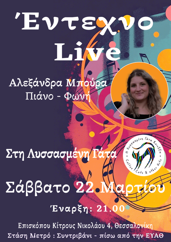 📢 Έντεχνο Live στη Λυσσασμένη Γάτα 🎶 Το Σάββατο 22 Μαρτίου στις 21:00, σας περιμένουμε στη Λυσσασμένη Γάτα για μια…